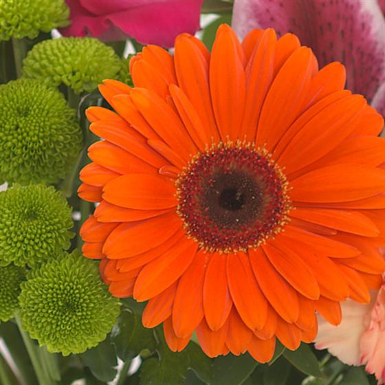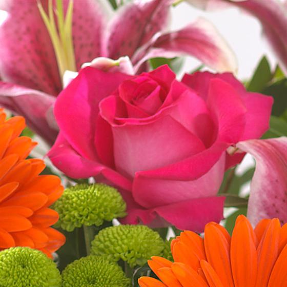 We will personally create your bouquet using the finest and freshest cerise, orange, purple and lime flowers, the image shown is for illustration purposes only and may vary. Delivered beautifully gift wrapped ready to be arranged in a vase. You can add a vase to your order at the checkout if required.