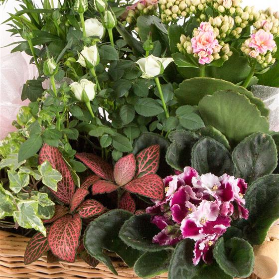 A long lasting gift of seasonal flowering and non-flowering plants presented in a tradtional basket.