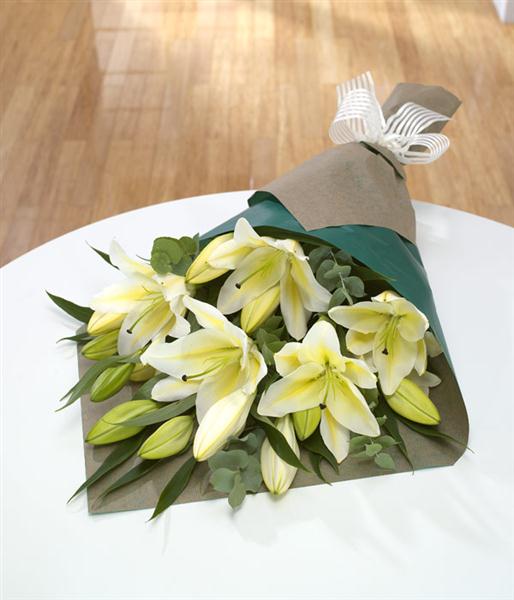 A simple wrap of white Lilies says it all.