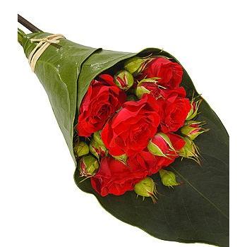 Red Spray Rose, Anthurium Leaf, Natural Raffia.